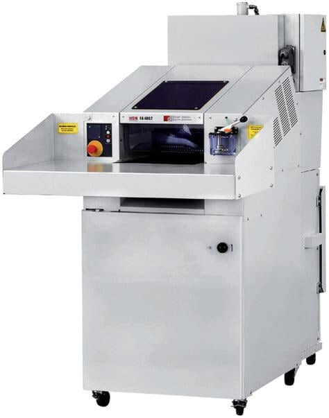 HSM SP4040s Strip Cut Shredder/Baler is one of the most functional data disposal products available in contemporary markets. This state of the art shredder/baler has all the desirable qualities and is best suited for large archives or central shredding points in high-end organizations. Its highly capable shredding unit can shred an amazing 130 sheets of paper at a time, which is remarkable for organizations that have heavy workloads. To complement this feature, the feed throat is 17” wide so large documents can be easily shredded as well. The highly durable shredding unit uses a continuous duty motor and a geared, chain-driven transmission that work consistently in all conditions and can effortlessly handle a range or materials including flash drives, floppy disks, plastic cards, and optical disks. The baling unit of HSM SP4040s is also a class of its own. It can handle bales up to 77 lb. in weight and produces up to 8 bales per hour. This baling ability translates to a large volume of waste material that is compressed to a more compact, manageable form. Augmenting the heavy-duty machinery used in the SP4040s Strip Cut Shredder/Baler are HSM’s various technologies. The JamStop function is essential in heavy-duty applications it is designed for. When overloaded, this function stops the shredder when it is overloaded and there are chances of a jam occurring, saving users’ time and unnecessary effort. The feed unit is equipped with an electric conveyer to speed up the feeding process. An LED indicator is in place to let operators know the mode in which the machine currently is. Finally, a 39 gallon waste bin is part of the design to make shredding even easier for people.